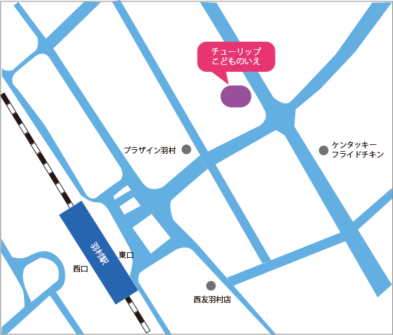 アクセスマップ チューリップ・こどものいえ(東京都認証保育所事業) 【アクセスマップ】 〒205-0011 東京都羽村市五ノ神4-13-10ワタヤビル1階 TEL 042-554-5635 平日 7:00~20:00 まで (基本時間 8:00~18:00) アクセスマップ フットボールクラブ・クオルテ(親子情操教育支援事業) 【アクセスマップ】 〒205-0011 東京都羽村市神明台1-18-1 TEL 042-554-5635 Copyright © チューリップこどものいえ